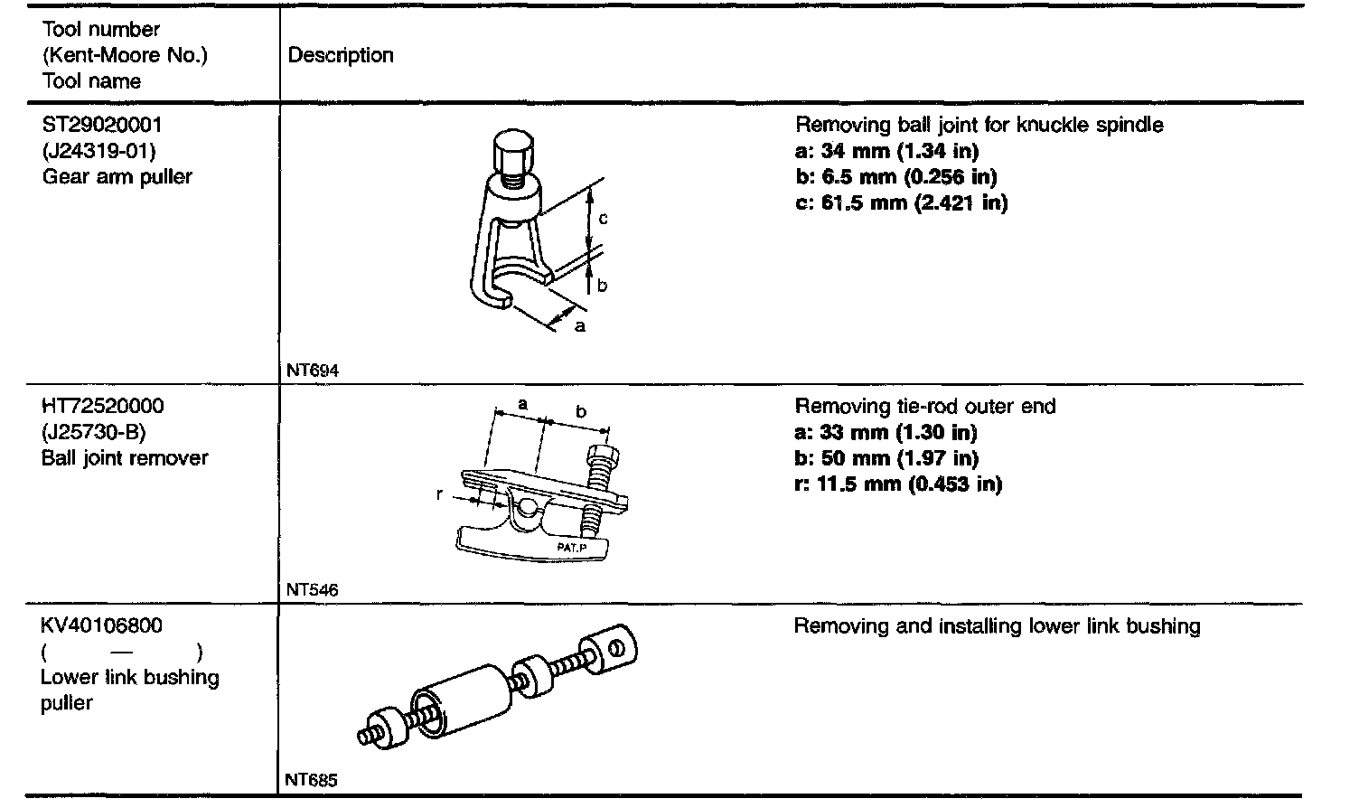 The actual shapes of Kent-Moore tools may differ from those of special service tools illustrated here.