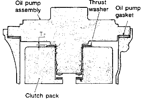 - If end play is out of specification, decrease or increase thickness of oil pump thrust washer as necessary.