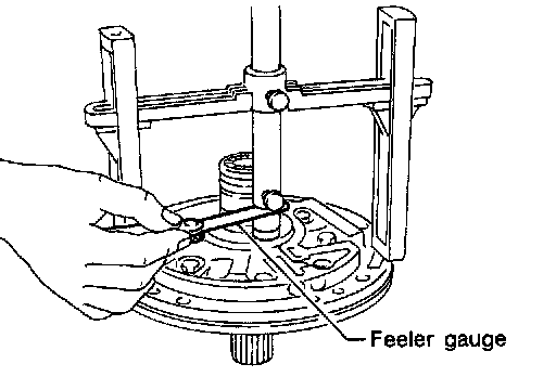 d. Use feeler gauge to measure gap between gauging plunger and gauging cylinder. This measurement should give you exact reverse clutch drum end play.