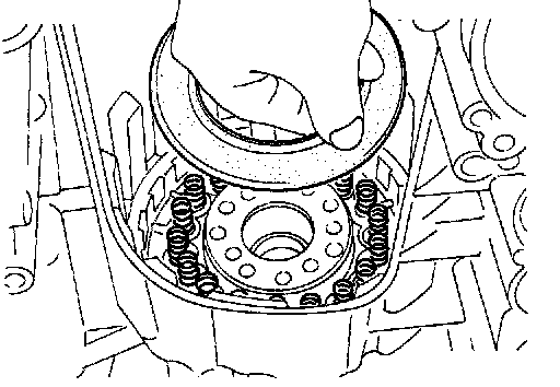 2. Remove snap ring, low and reverse brake drive plates, driven plates and dish plate.