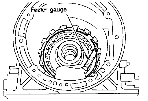 8. Measure clearance between retaining plate and snap ring. If not within allowable limit, select proper retaining plate.