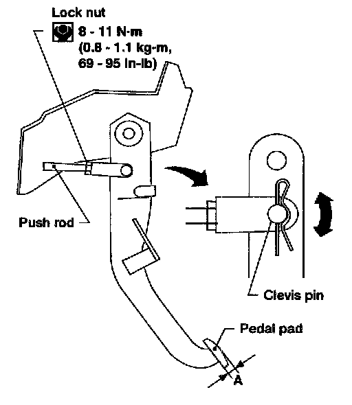 3. Make sure that clevis pin can rotate smoothly. If not, readjust pedal tree play with master cylinder push rod.