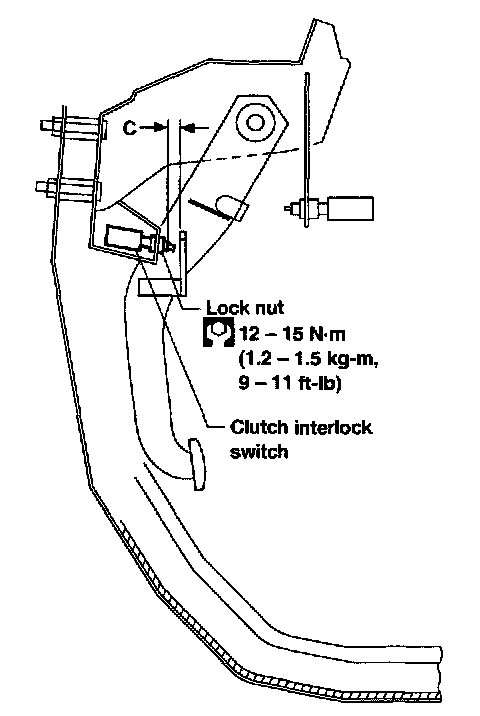 1. Adjust clearance "C" shown in the figure while fully depressing clutch pedal.