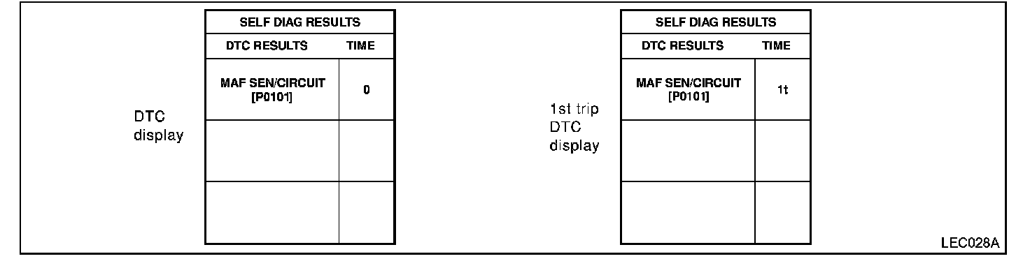The 1st trip DTC (whose number is the same as the DTC number) is displayed for the latest self-diagnostic result obtained. If the ECM memory was cleared previously, and the 1st trip DTC did not reoccur, the 1st trip DTC will not be displayed.
