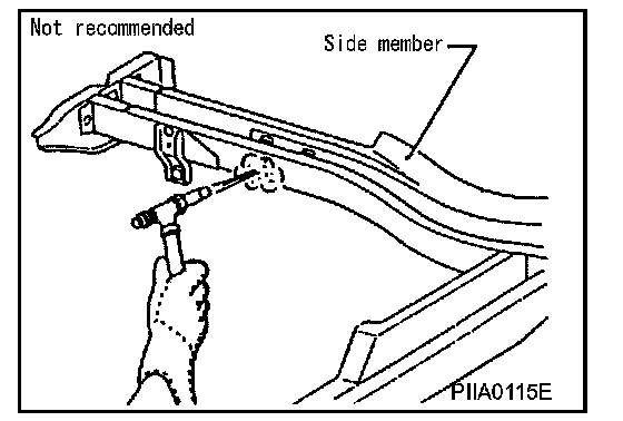 The repair of reinforcements (such as side members) by heating is not recommended since it may weaken the component. When heating is unavoidable, do not heat HSS parts above 550 °C (1,022 °F).