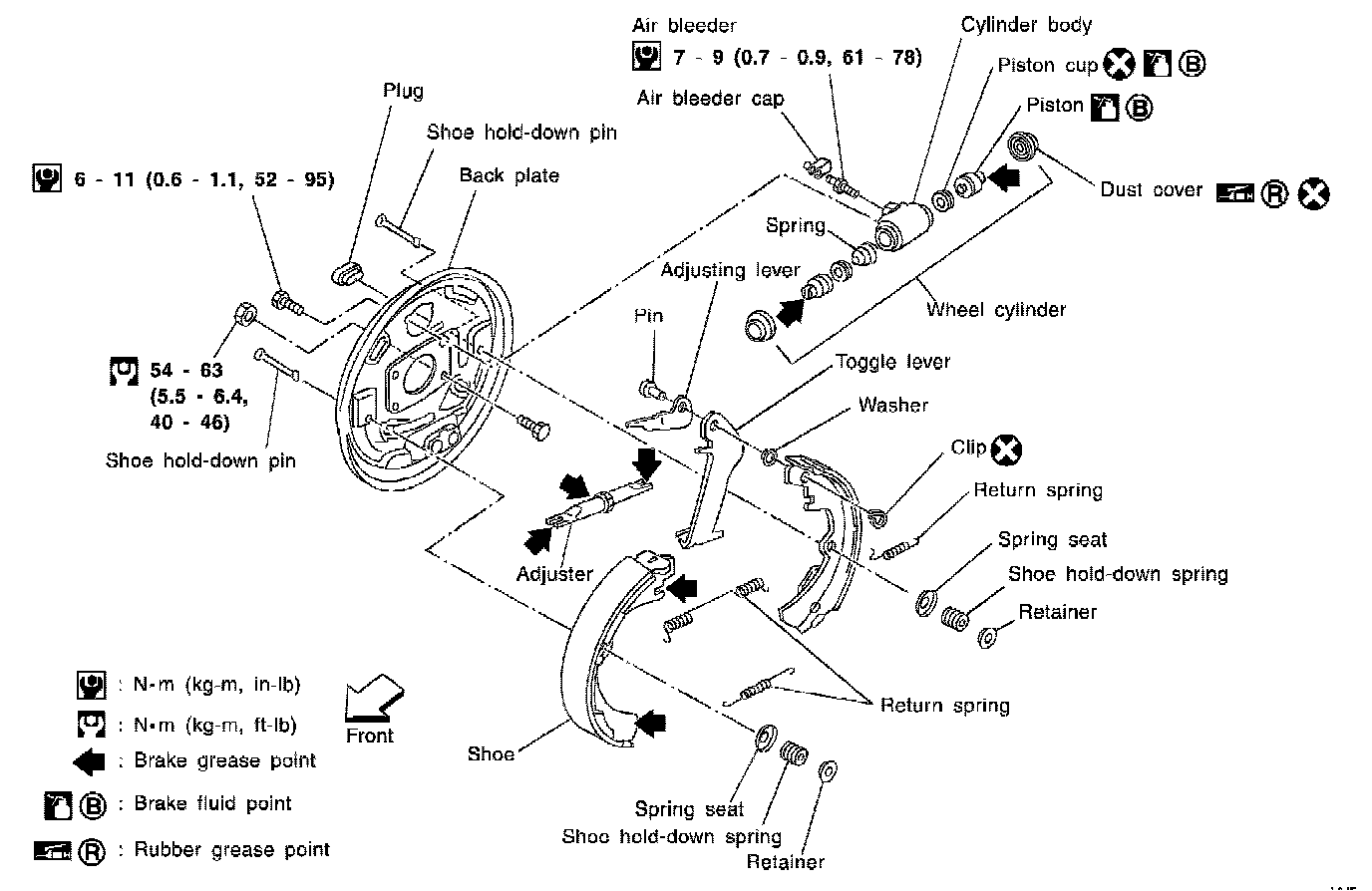 7. When installing new wheel cylinder or overhauling wheel cylinder, bleed air.