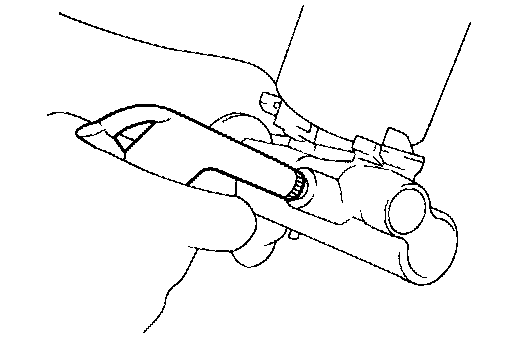 If it is difficult to remove secondary piston assembly, gradually apply compressed air through fluid outlet.