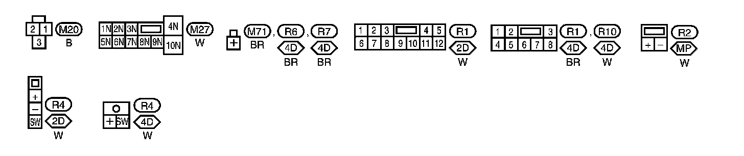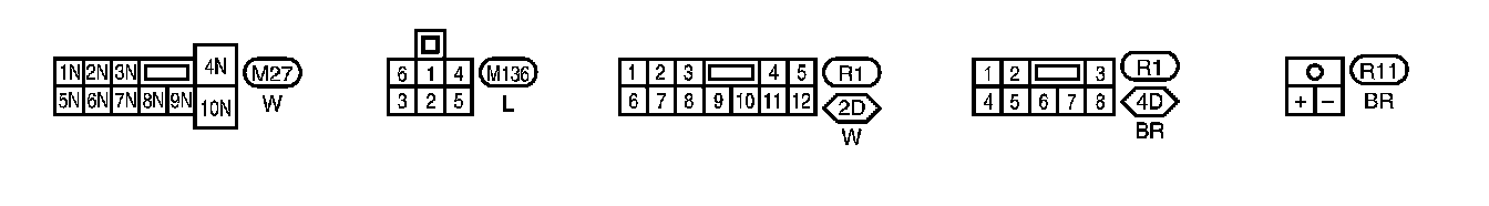 EL-ROOM/L-01 (Models Without Power Door Locks) Connector Views: