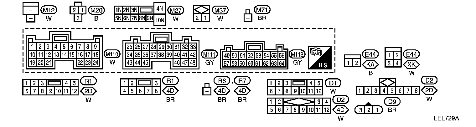 EL-ROOM/L-04 (Models With Power Door Locks) Connector Views: