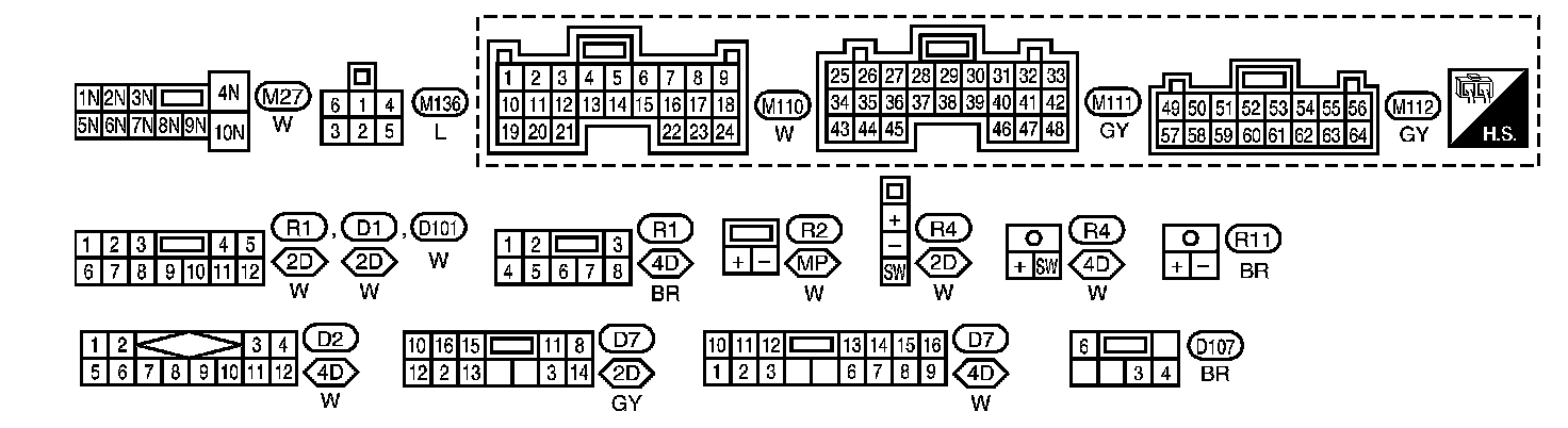 EL-ROOM/L-03 (Models With Power Door Locks) Connector Views: