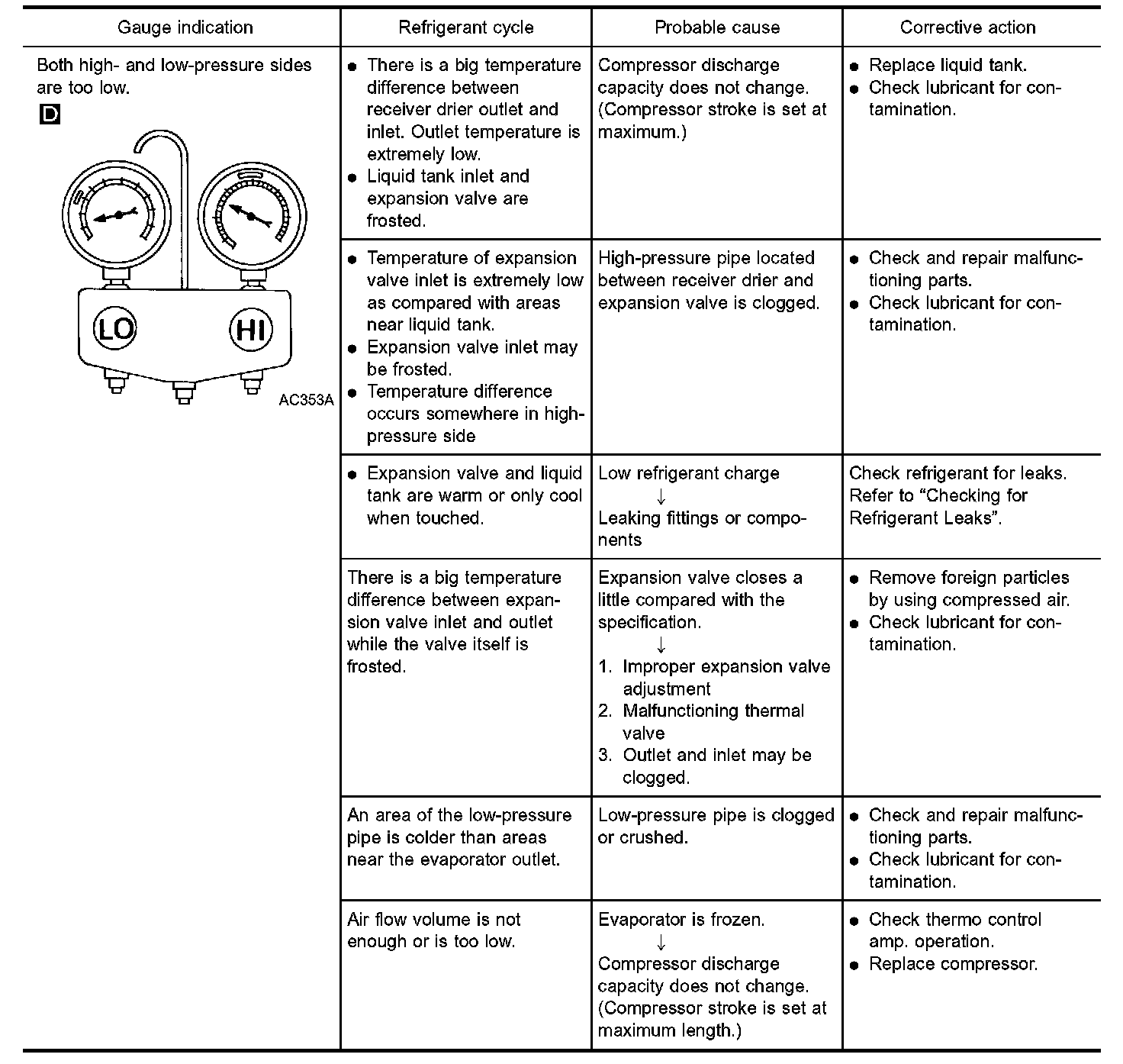 Since the standard (normal) pressure, however, differs from vehicle to vehicle, refer to "Ambient Air Temperature-to-Operating Pressure Table ".