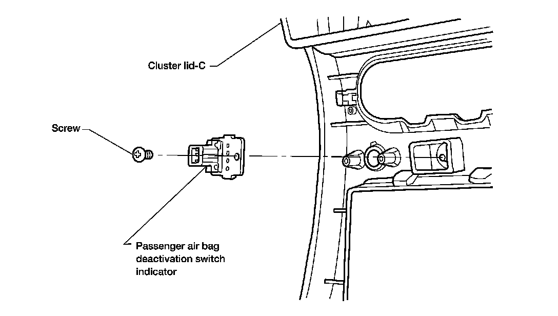 2. Remove one screw and remove passenger air bag deactivation switch indicator.