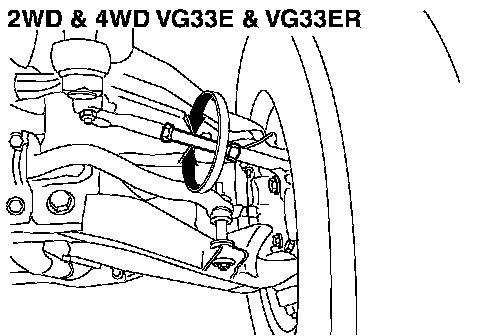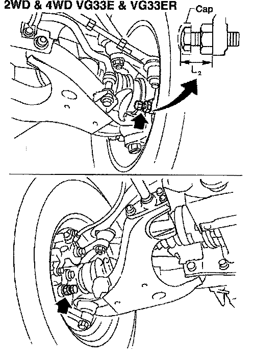 Make sure that the tie-rod bars are screwed into the tie-rod tube more than 35 mm (1.38 inch) KA24DE, 22mm (0.87 inch) 2WD and 4WD VG33E and VG33ER.