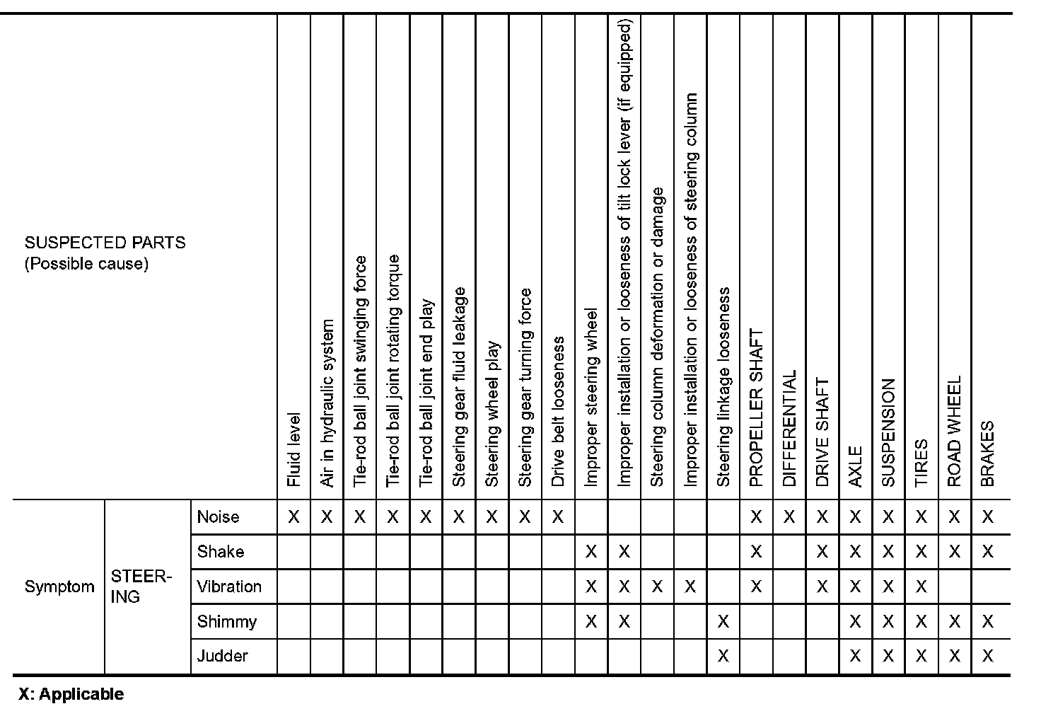 NOISE / VIBRATION / HARSHNESS / NVH Troubleshooting Chart: