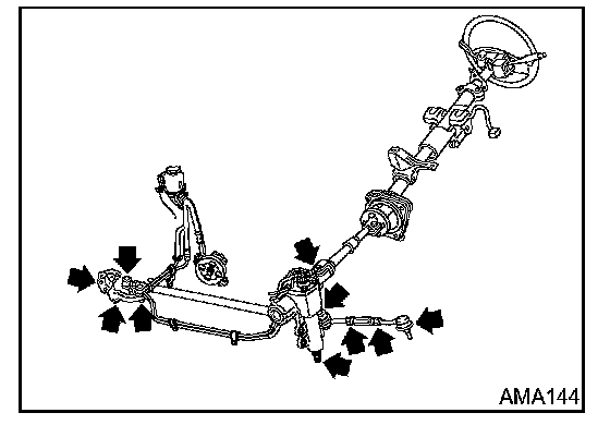 Check ball joint, dust cover and other component parts for looseness, wear, damage and grease leakage.