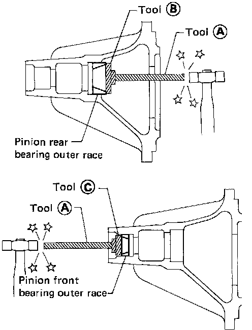 1. Press-fit front and rear bearing outer races with Tools.
