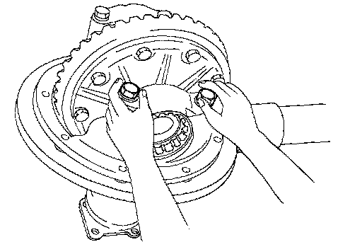 12. Position side bearing adjusters on gear carrier with threads properly engaged; screw in adjusters lightly at this stage of assembly.