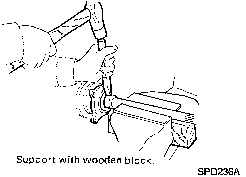2. Reinstall differential side shaft into extension tube and secure with bolts. Remove rear axle bearing by drawing out differential side shaft from rear axle bearing with puller.