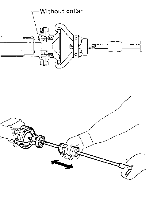 1. Cut collar with cold chisel. Be careful not to damage differential side shaft.