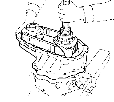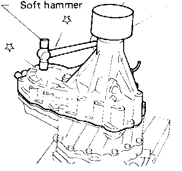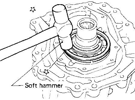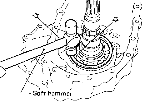 a. Install mainshaft on center case by tapping lightly. Apply ATF to mainshaft front bearing.