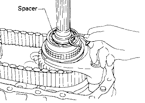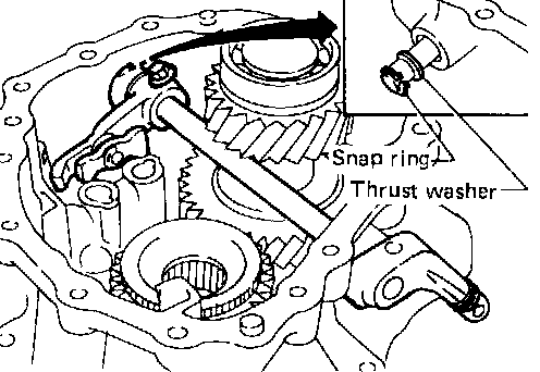 m. Install L & H hub and snap ring to mainshaft. Pay attention to direction of L & H hub.
