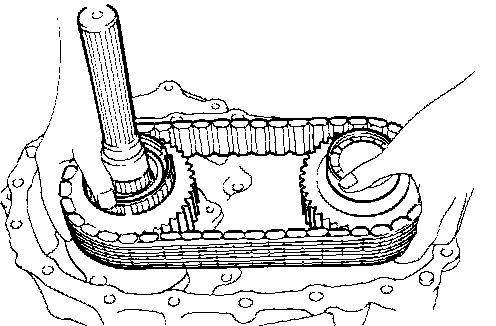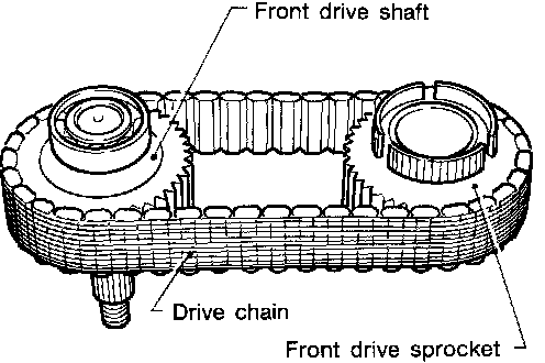 c. Put drive chain onto the front drive sprocket and front drive shaft, and then put them in center case.