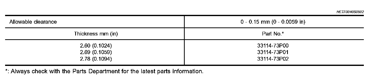 Allowable clearance between snap ring and groove:.........................0 - 0.15 mm (0 - 0.0059 inch)