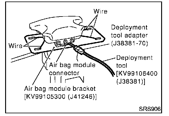 4. Connect deployment tool adapter (SST: J38381-70) deployment tool [SST: KV99106400 (J38381)] to air bag module connector.