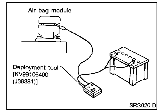 DEPLOYMENT PROCEDURES FOR AIR BAG MODULE (OUTSIDE OF VEHICLE)Unless the vehicle is being scrapped, deploying the air bag in the vehicle is not recommended. This may cause damage to the vehicle interior.