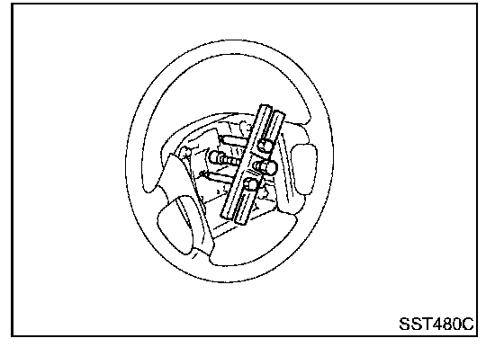 7. Remove dynamic damper, then using steering wheel puller, remove steering wheel. Be careful not to over-tighten puller bolt on steering wheel.