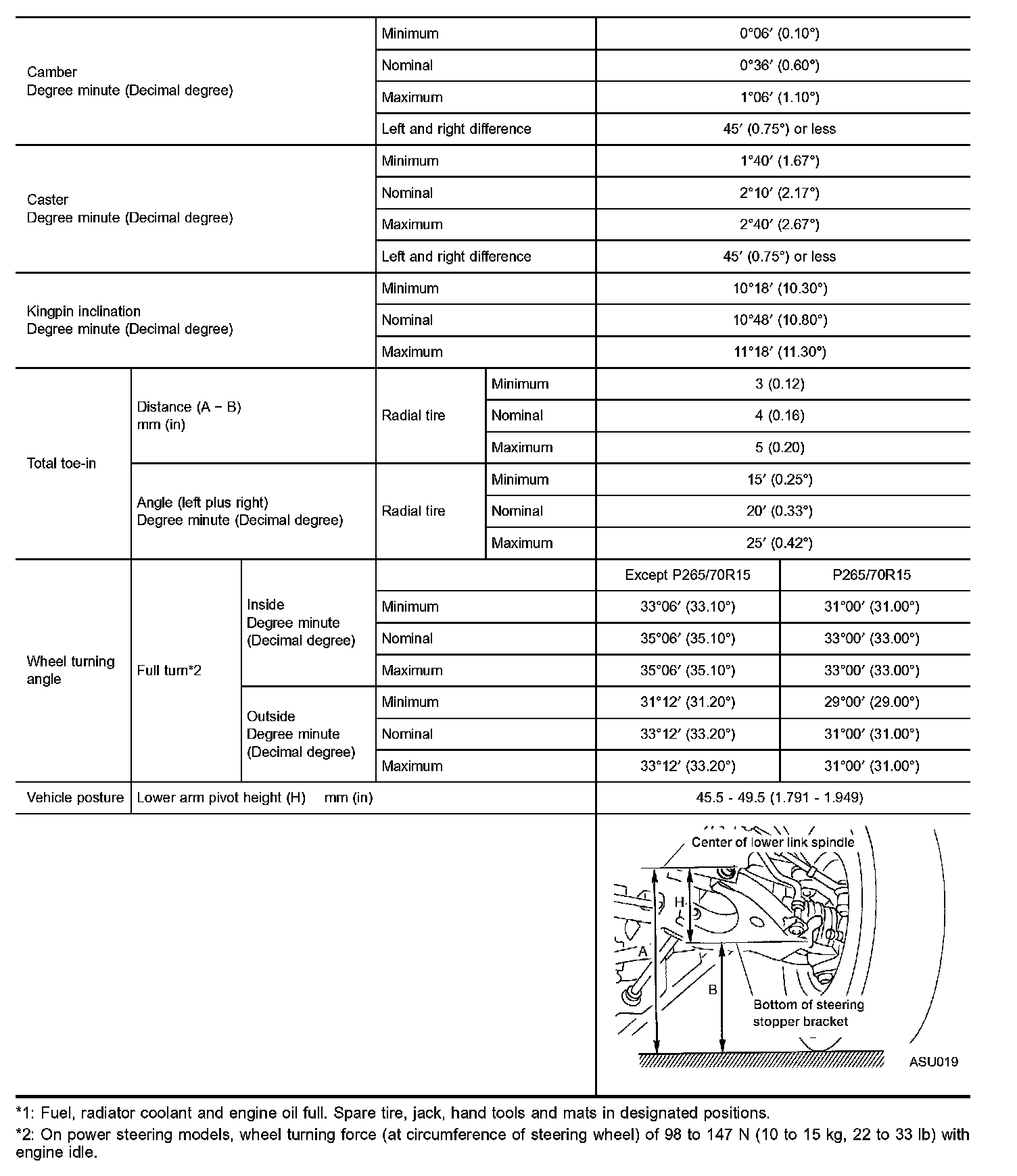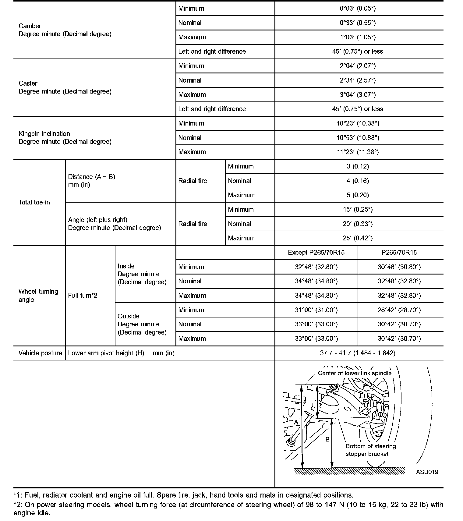 WHEEL ALIGNMENT (UNLADEN*1)