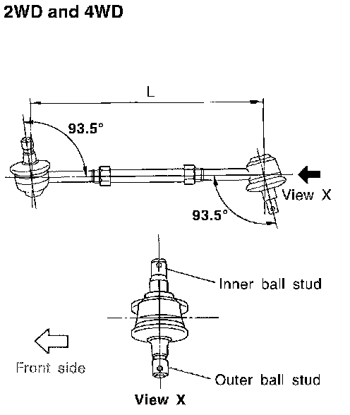 1. When tie-rod ball joints and tie-rod bar are separated, adjust tie-rod length correctly. Adjustment should be done between ball stud centers.