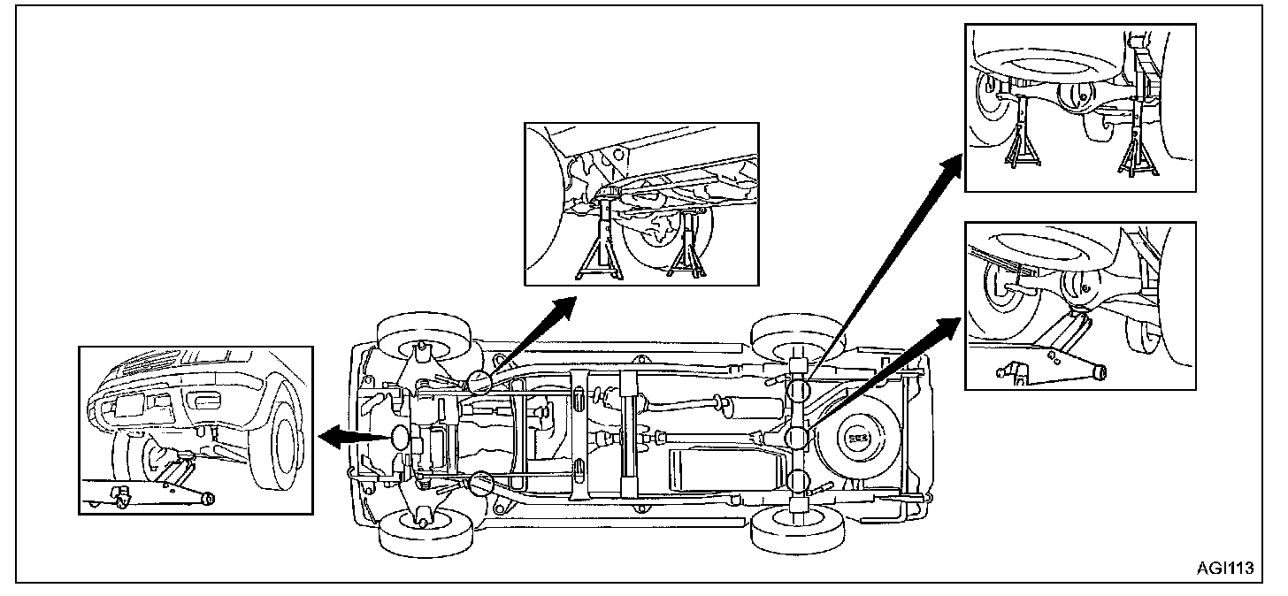 Place a wooden or rubber block between safety stand and vehicle body when the supporting body is flat.