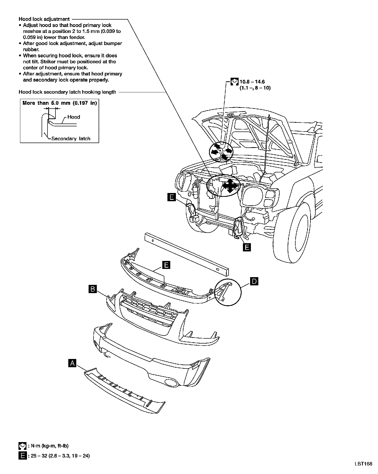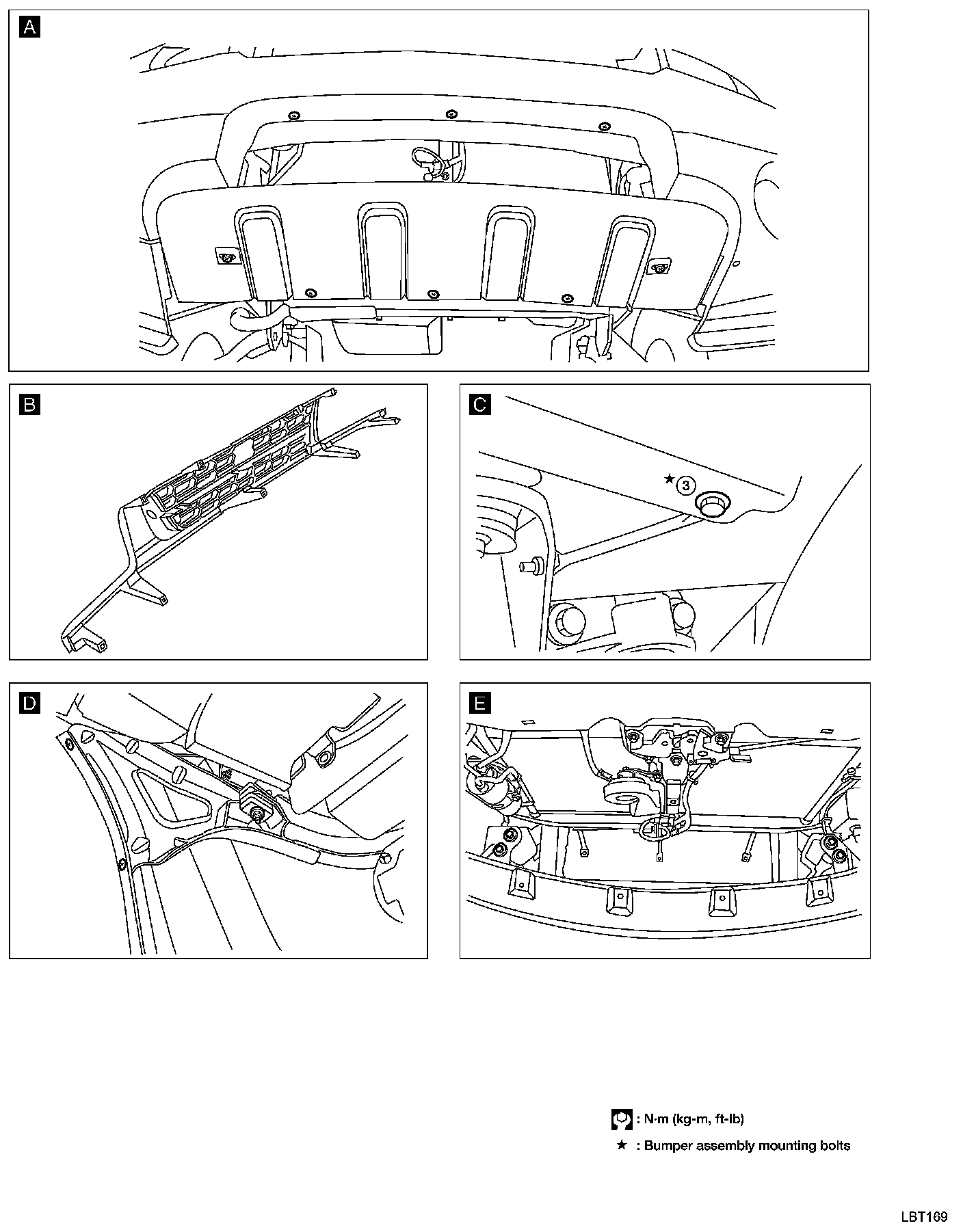 7. Remove bolts securing left and right bumper from bumper brackets. E