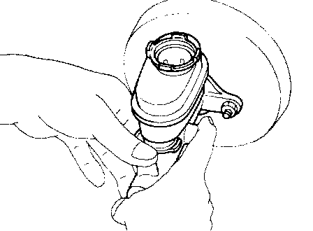 ^ In the case of brake fluid leakage from the master cylinder, disassemble the cylinder. Then check piston cups for deformation and scratches and replace necessary parts.