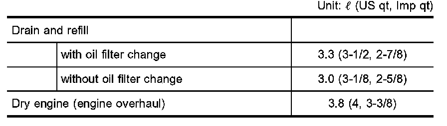 The refill capacity depends on the oil temperature and drain time; use the "Refill oil capacity" values as a reference and be certain to check with the dipstick when changing the oil.