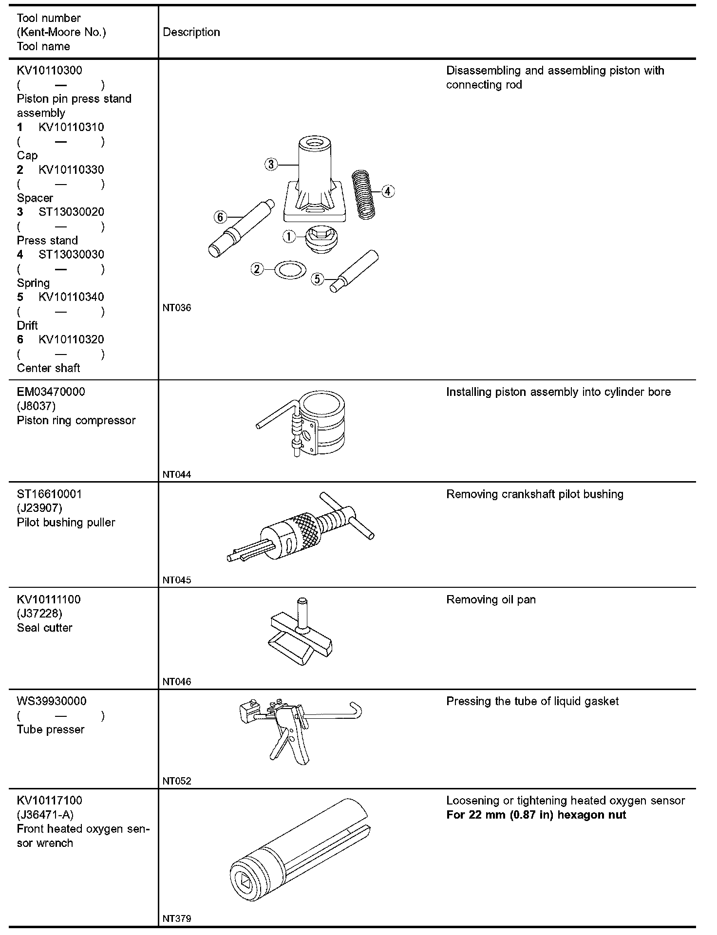 The actual shapes of Kent-Moore tools may differ from those of special service tools illustrated here.
