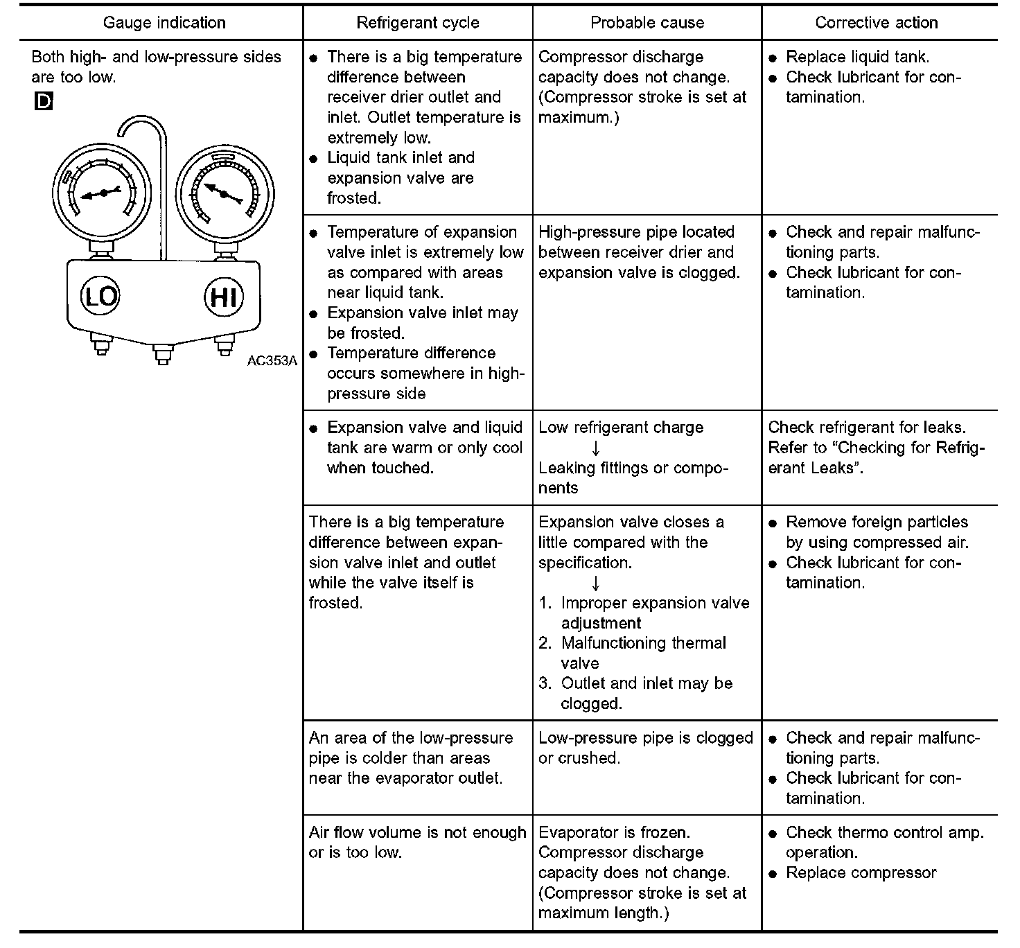 Since the standard (normal) pressure, however, differs from vehicle to vehicle, refer to "Ambient Air Temperature-to-Operating Pressure Table ".
