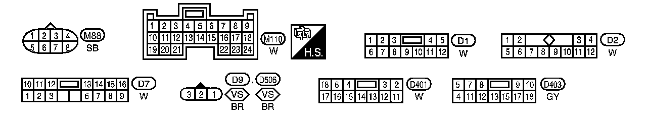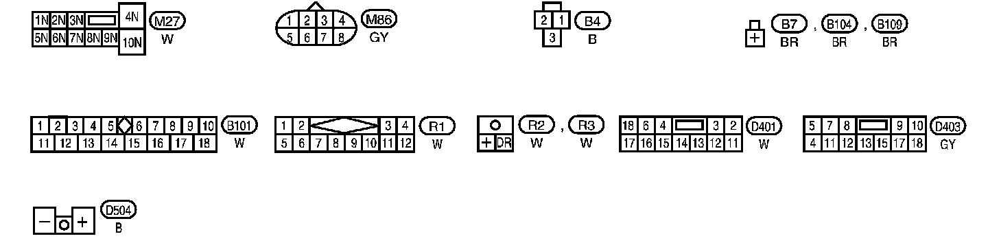 EL-ROOM/L-01 (Models Without Power Door Locks) Connector Views: