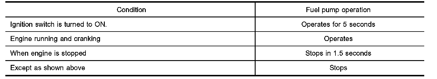 The ECM activates the fuel pump for several seconds after the ignition switch is turned on to improve engine startability. If the ECM receives a 120 ° signal from the camshaft position sensor, it knows that the engine is rotating, and causes the pump to operate. If the 120 ° signal is not received when the ignition switch is on, the engine stalls. The ECM stops pump operation and prevents battery discharging, thereby improving safety. The ECM does not directly drive the fuel pump. It controls the ON/OFF fuel pump relay, which in turn controls the fuel pump.