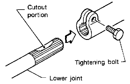 ^ When fitting steering lower joint, be sure tightening bolt faces cutout portion.