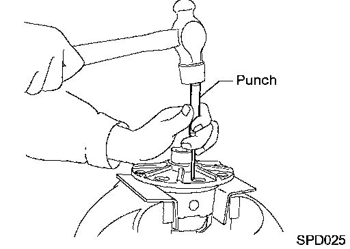 4. Punch off pinion mate shaft lock pin from ring gear side.