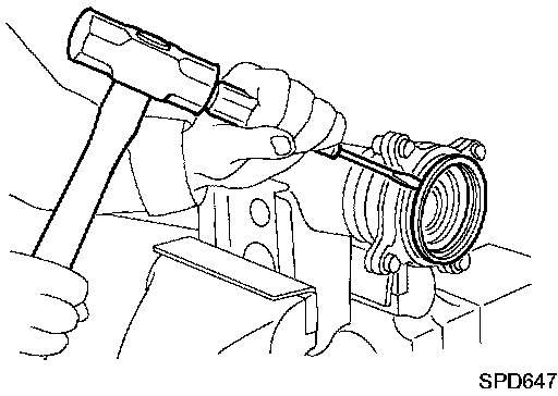 1. Cut collar with cold chisel. Be careful not to damage differential side shaft.