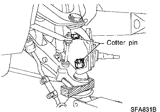 c. Remove ball joint tightening nuts. Support lower link with jack.