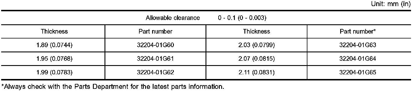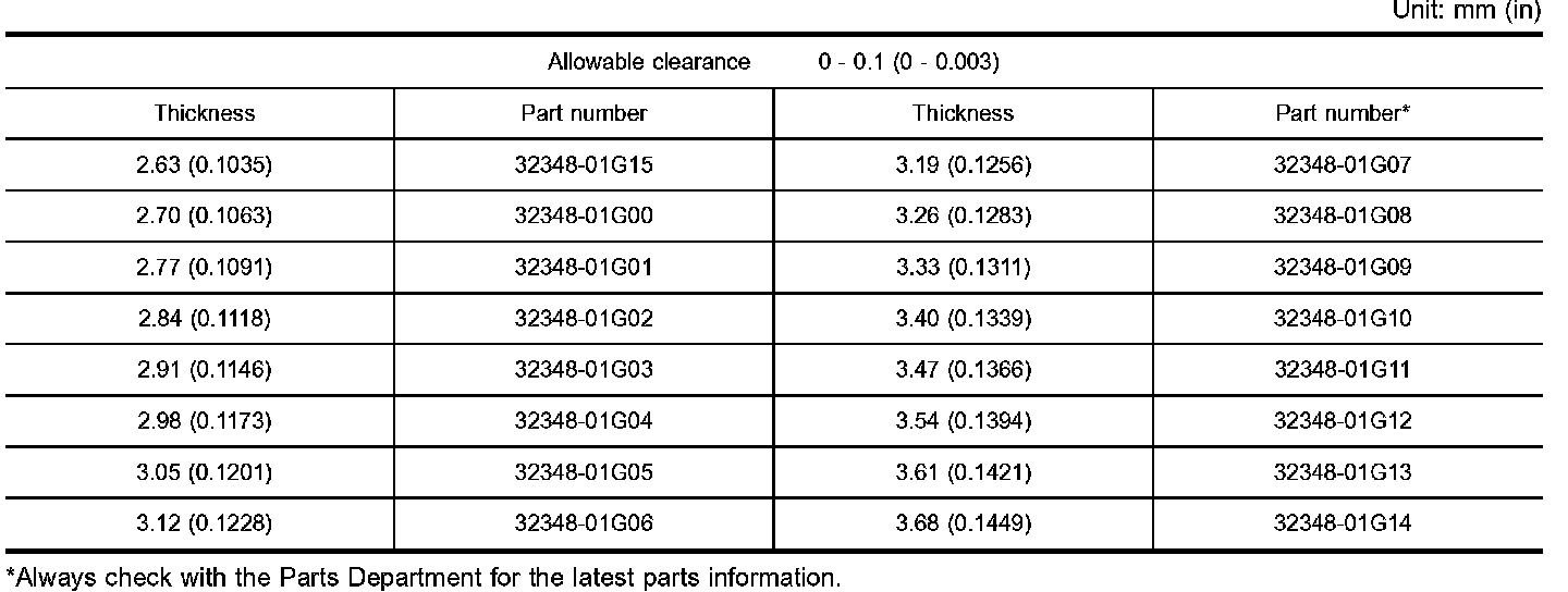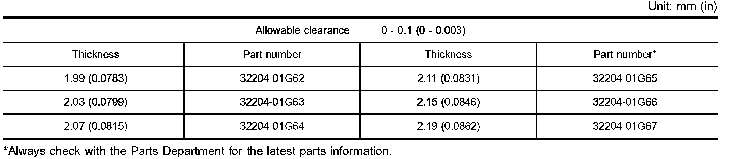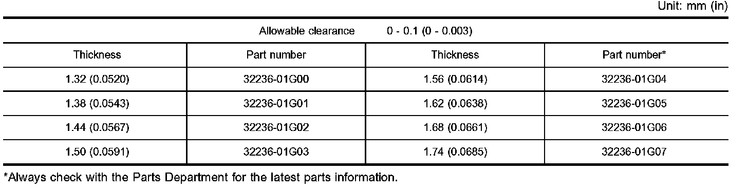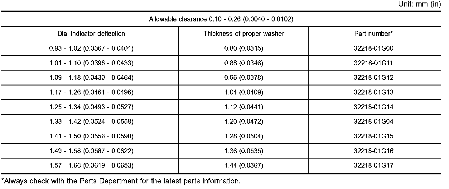 TABLE FOR SELECTING PROPER COUNTER GEAR FRONT BEARING THRUST WASHER:
