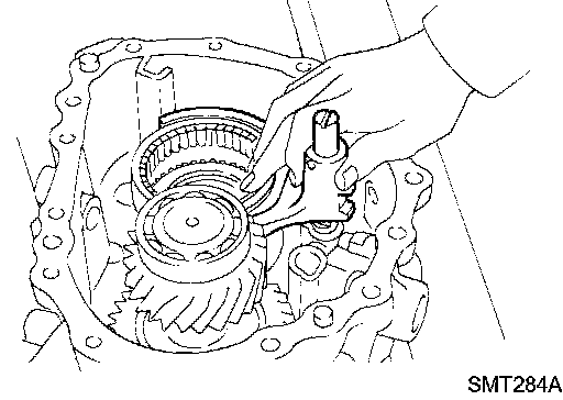 If it is outside specifications, check front drive sprocket, 2-4 coupling sleeve, clutch gear, 2-4 shift fork and 2-4 fork rod for abnormalities.