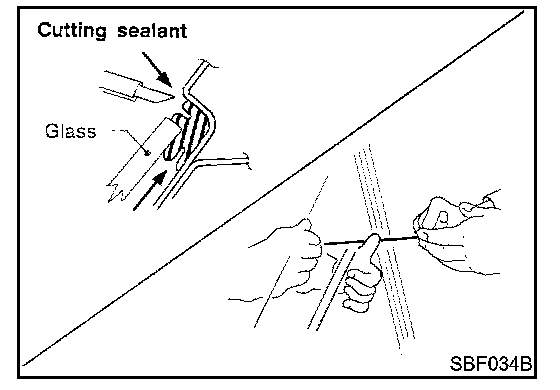 REMOVAL After removing moldings, remove glass using piano wire or power cutting tool and an inflatable pump bag.