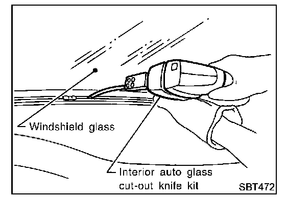 WARNING: 1mWhen cutting the glass from the vehicle, always wear safety glasses and heavy gloves to help prevent glass splinters from entering your eyes or cutting your hands.