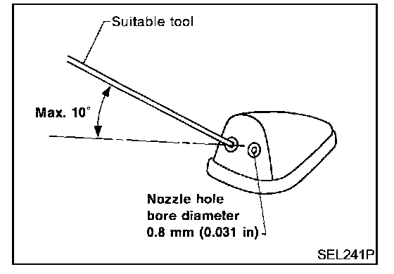 Adjust washer nozzle with suitable tool as shown in the figure.
