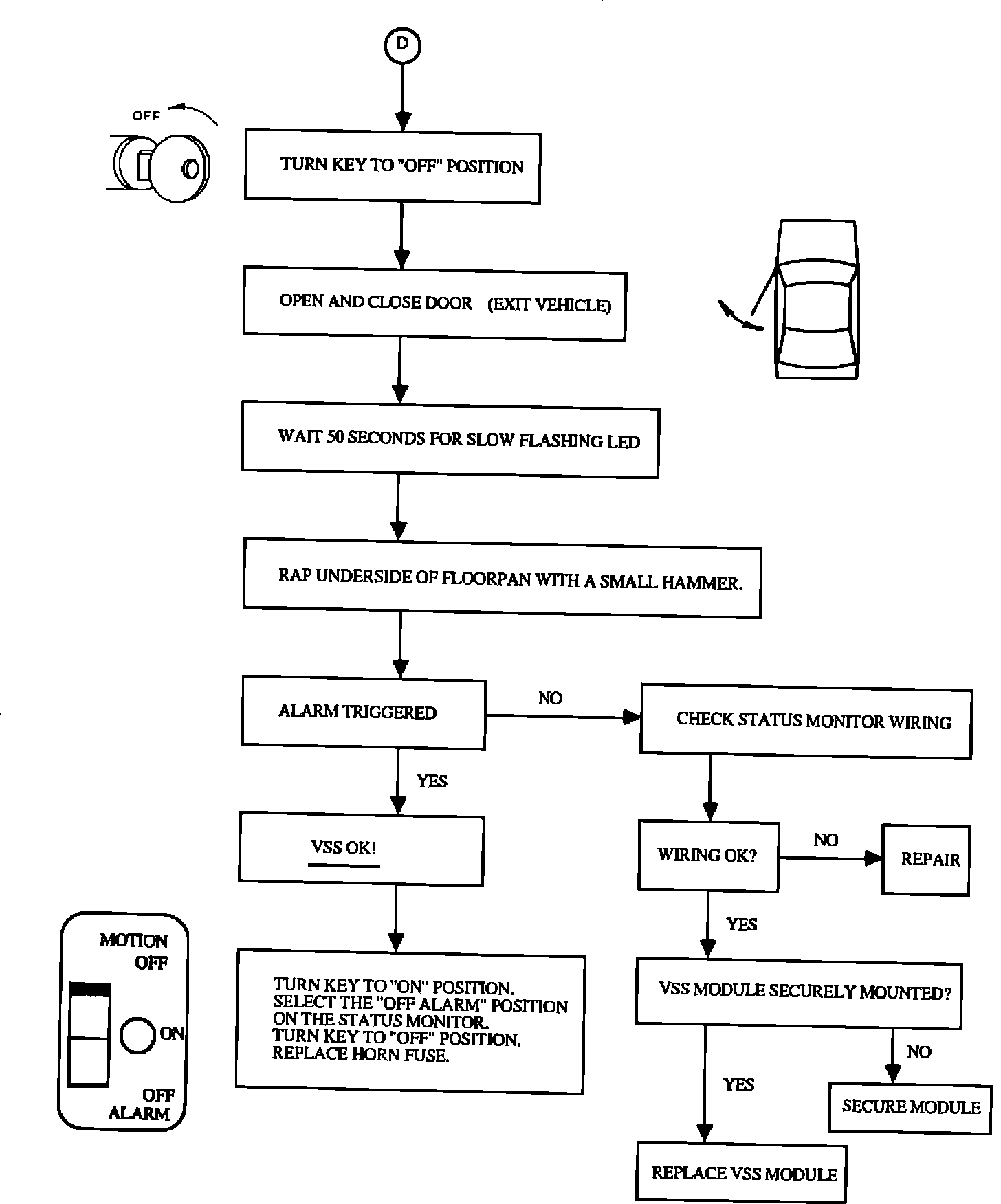The following revised Vehicle Security System (V.S.S.) Troubleshooting Guide supercedes the guide issued with Technical Bulletin BE86-012 (TS86-111), dated July 7, 1986. Use this procedure when testing the V.S.S. alarm.